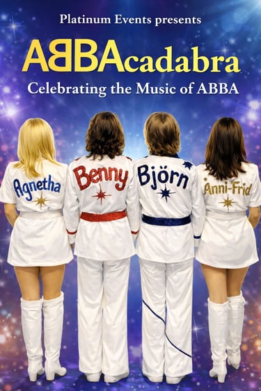 ABBAcadabra is a high-energy tribute celebrating the unforgettable music of ABBA. Capturing the sound, style, and spirit of one of the world’s most iconic pop groups, the band delivers all the classic hits with stunning harmonies, authentic costumes, and a feel-good live show that has audiences singing along from start to finish.